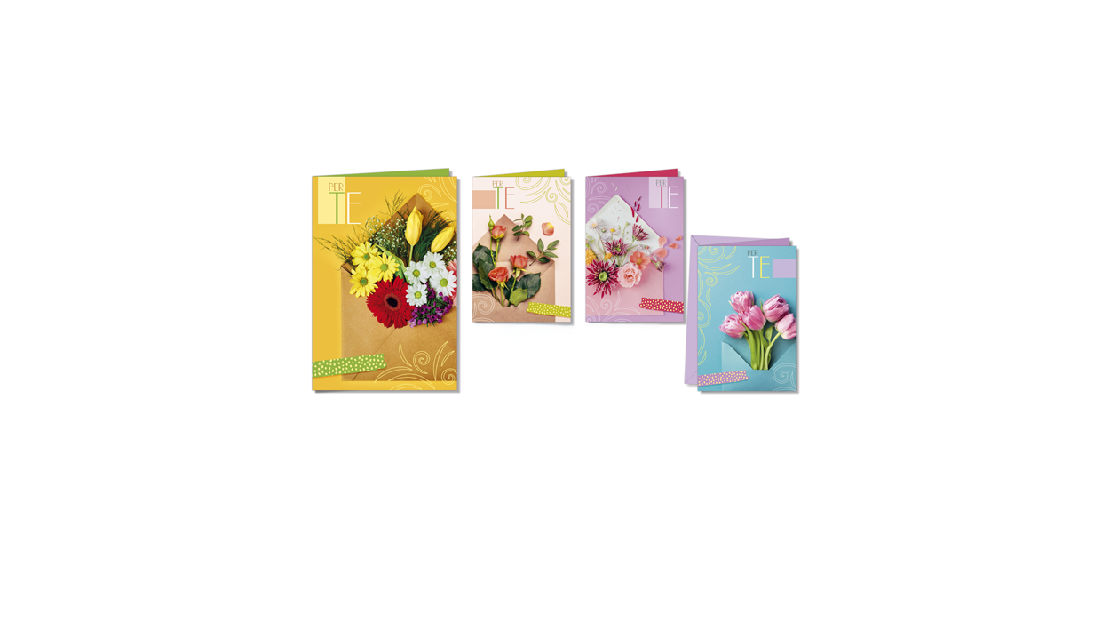 1Cfz.x12Pz. Biglietti di compleanno con decorazioni floreali delicate e messaggi augurali, ideali per una clientela giovane e attenta ai dettagli. Formato 11,5x17 cm, perfetti per arricchire l’offerta in tabaccheria e bar.