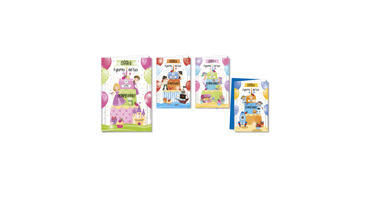 1Cfz.x12Pz. Biglietti di compleanno dai toni eleganti e delicati, con dettagli come candeline, fiori e buste personalizzabili con l’età, ideali per arricchire l’offerta di auguri in tabaccherie e bar.