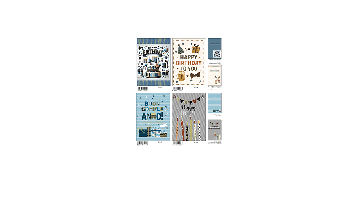 1Cfz.x12Pz. Biglietti di compleanno dal design moderno, con grafiche maschili come skateboard, Vespa e motivi birra, perfetti per un pensiero originale in tabaccheria o bar. Formato 11,5x17 cm, ideali per auguri d’impatto.