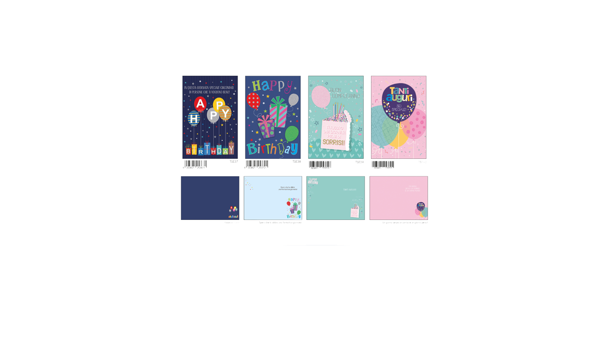 1Cfz.x12Pz. Colorati biglietti di auguri con dettagli in rilievo e grafiche vivaci, ideali per festeggiare ogni compleanno con un tocco speciale. Perfetti per arricchire l’offerta di biglietti festivi in tabaccherie e bar.