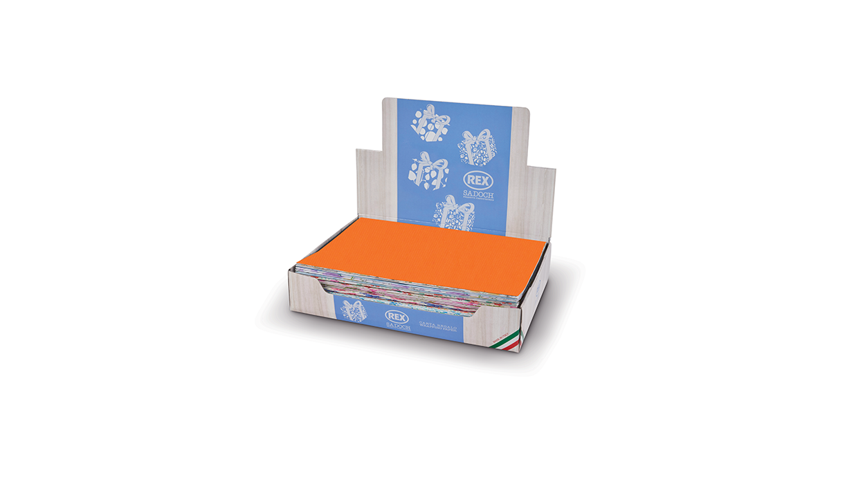 1Cfz.x100Pz. Rex Carta Regalo Tinta Unita, proposta in una vivace tonalità arancione, è ideale per confezionare regali in modo elegante e pratico grazie al comodo espositore da banco. Il packaging colorato attira l’attenzione e valorizza l’area regalo di tabaccherie e bar.