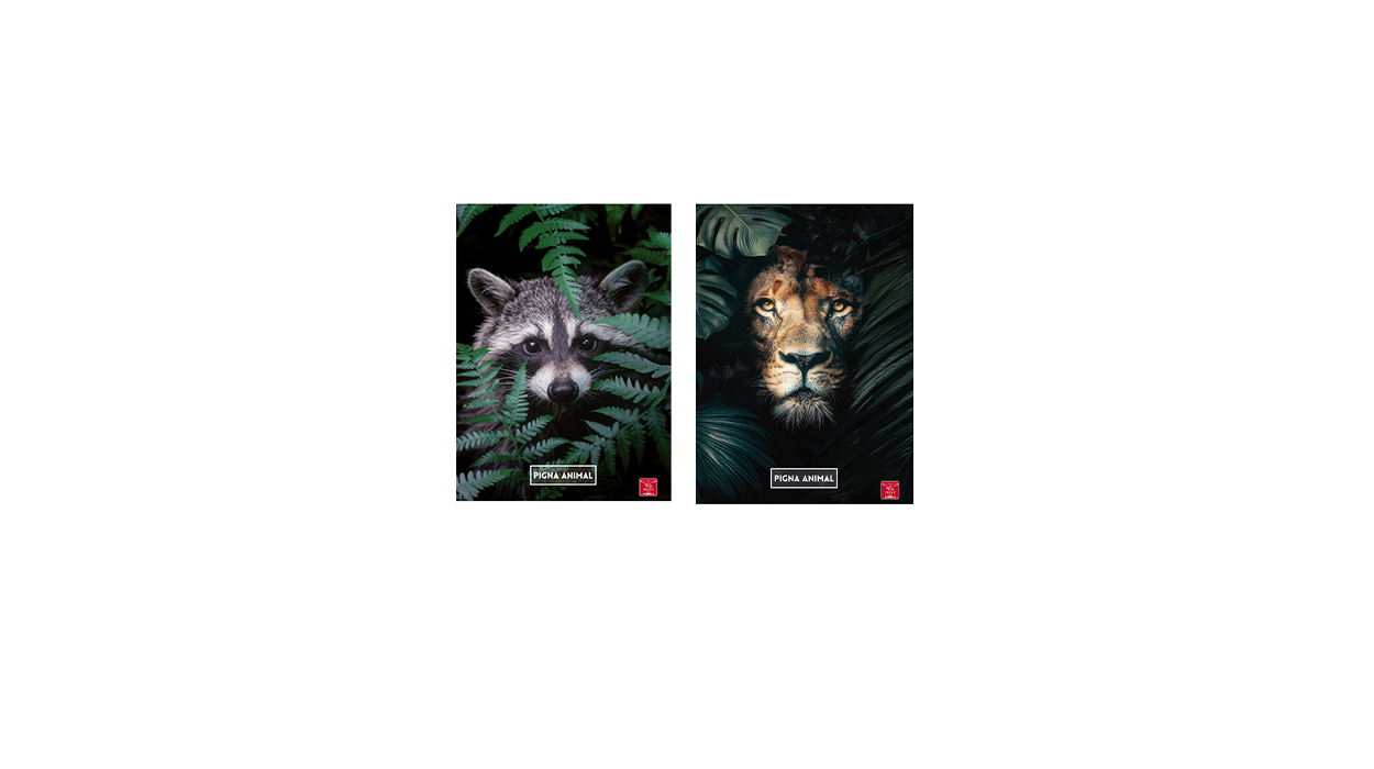 1Cfz.x10Pz. Quaderni A4 con copertina raffigurante animali selvatici in primo piano, carta 80g e rigatura B ideali per la scuola primaria. Prodotto resistente e accattivante, perfetto per scaffali di tabaccherie e bar.