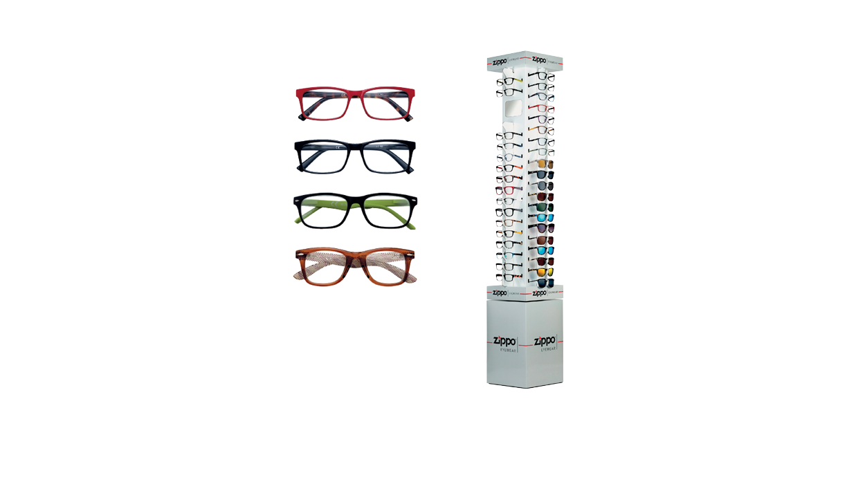 Kit Zippo Expo Terra Misto 84 Occhiali Lettura + 36 Occhiali Sole