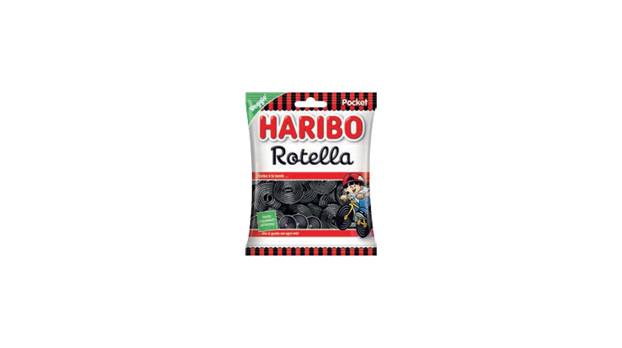 1Cfz.x30Pz. Haribo Rotella 80G propone le iconiche rotelle di liquirizia in una confezione pratica e colorata, ideale per l’esposizione vicino alla cassa. Perfette per una clientela giovane grazie alla comunicazione vivace e alla scritta “senza coloranti artificiali” ben visibile sul fronte.