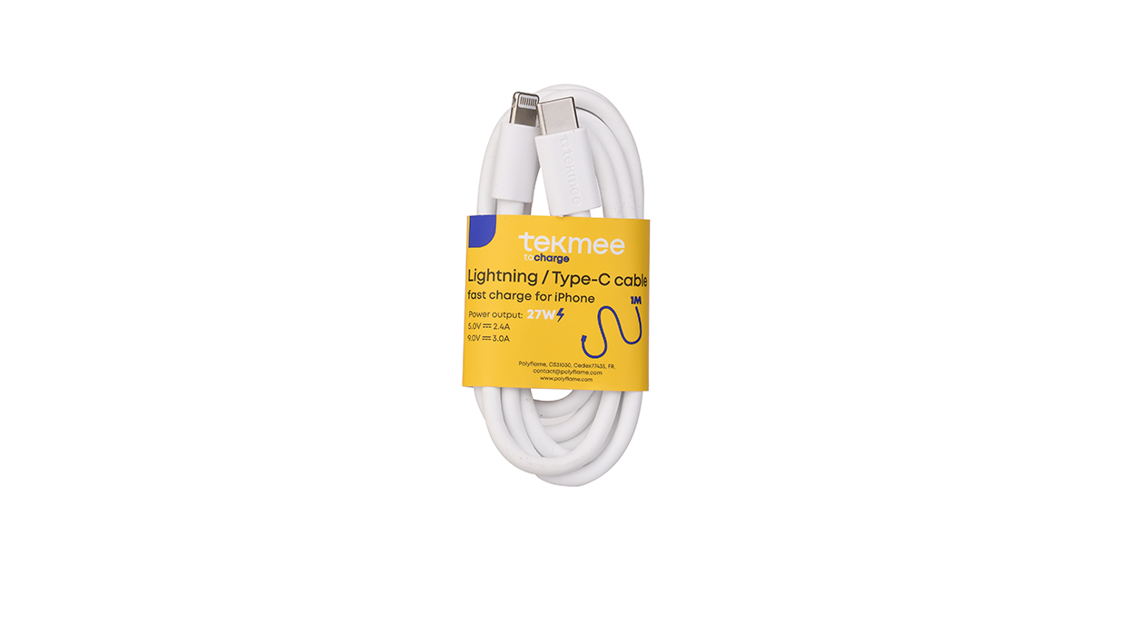 1Cfz.x14Pz. Cavo Tekmee Lightning-USB Type-C da 1 metro, ideale per la ricarica e la sincronizzazione di dispositivi Apple. Confezione compatta e design essenziale, perfetto per il banco di tabaccherie e bar. Ricarica Rapida Output 2.4A Lightning - Tipo C