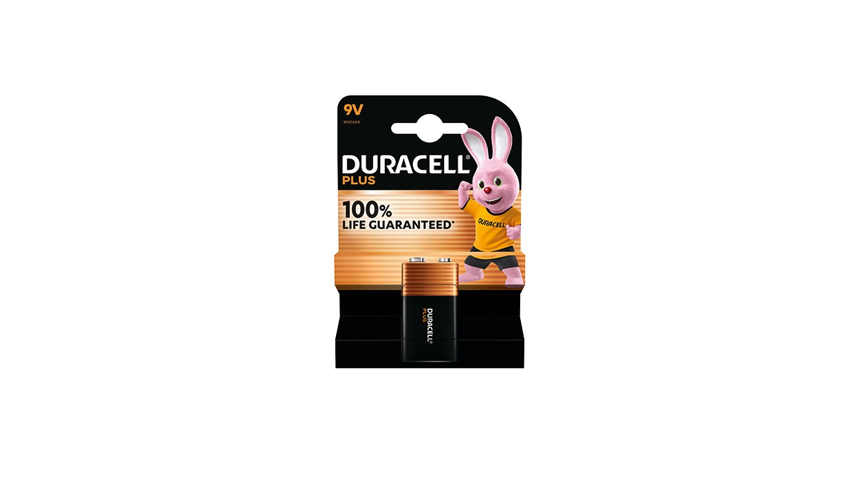 1Cfz.x10Bl. Duracell Plus 9V è la pila ideale per dispositivi che richiedono massima affidabilità e lunga durata, confezionata singolarmente in un pratico blister. Il packaging accattivante richiama subito l’attenzione grazie all’iconico coniglio Duracell.